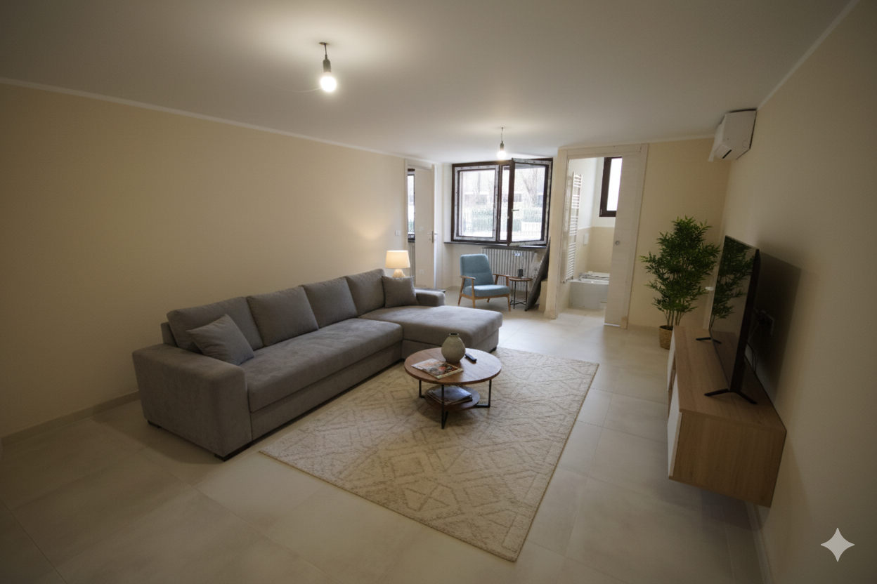 Strada Torino al confine Torino/ Moncalieri , nuovo restauro di piccola palazzina con quattro appartamenti. In vendita appartamento bilivello 140 mq composto da doppio ingresso , salone , cucina, 2 camere , biservizi, ampio secondo salone con uscita diretta sul giardino , vari locali di sgombro ,due posti auto , termoautonomo e climatizzato. Casapiemonte Hermada 011 819 1000 propone in vendita richiesta € 380.000,00 “Alcune foto pubblicate sono state migliorate grazie all’IA, qui sono stati inseriti elementi di arredo nella foto reale per poter completare gli spazi interni.”